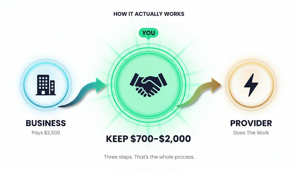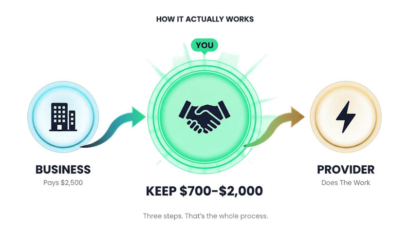 They keep the margin, anywhere from $700 to $2,000 per deal, without touching a single piece of the actual work.