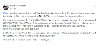 The learning doesn't stop when the session ends. The Facebook group is live all afternoon - assignments, progress sharing, support, and wins.